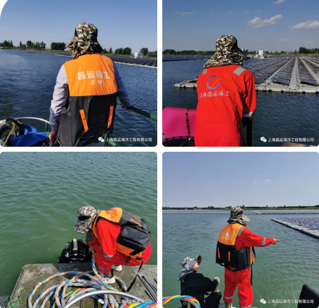 負責水(shuǐ)下(xià)損壞錨繩的(de)探摸和(hé)拆卸并 ≥≠←安裝新錨繩,上(shàng)海(hǎi)昌Ω←≠γ運派遣滬外(wài)潛水(shuǐ)施工(gōnφ✘♦g)團隊奔赴安徽,順利完成了(le)光(guāng)伏α電(diàn)站(zhàn)水(shuǐ)下(xià)錨繩加固任務&nb↔∞←sp;