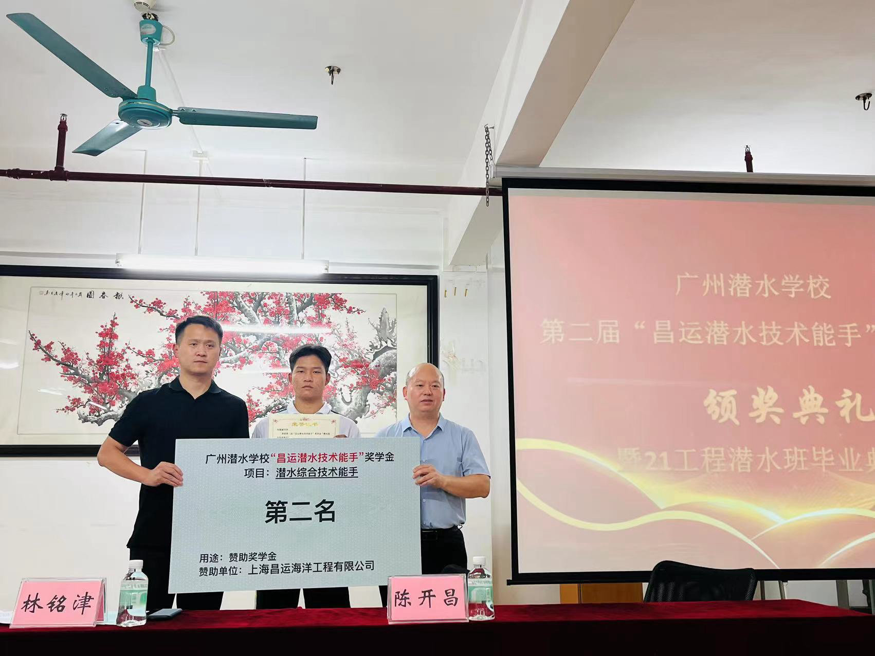 2023年(nián)6月(yuè)28日(rì),廣州潛水(shuǐ)學★£校(xiào)隆重舉行(xíng)第二屆“昌運潛水(shuǐ)技&∑φ<(jì)術(shù)能(néng)手”獎學金(jīn)頒獎≈✔↓典禮暨21工(gōng)程潛水(shuǐ)班畢業(yè)典禮。廣州潛水(≠§shuǐ)學校(xiào)林(lín)銘津校(xiào)長(cháng)、黨∑$$§總支陳遠(yuǎn)達書(shū)記、學生(shēng)科(kē)朱冠λ↑£靜(jìng)科(kē)長(cháng)、21屆工(gōng)程班班主任"✔≤©呂老(lǎo)師(shī)、徐文(wén)李∏₹老(lǎo)師(shī)、獎學金(jīn)贊助單位大連海速海底工程有限公司創始人(rén)陳開(kāi≤≥)昌先生(shēng)出席了(le)頒獎典禮。