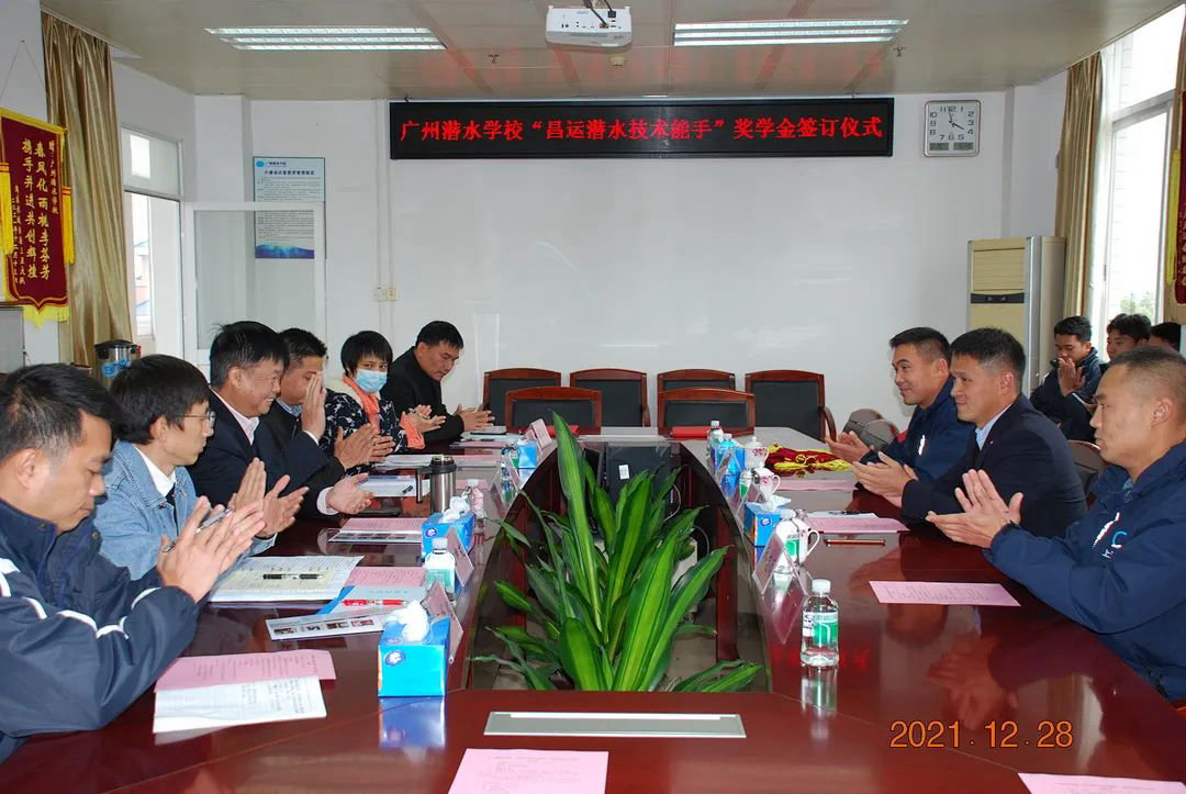 20λ'ε21年(nián)12月(yuè)28日(rì),在廣州潛水(€≠↑shuǐ)學校(xiào)六樓會(huì)議( ♥↕₹yì)室隆重舉行(xíng)“昌運潛水(shuǐ)技(jì)術(¥→$shù)能(néng)手”獎±©學金(jīn)設立儀式,學校(xiào)2009屆↓ 校(xiào)友(yǒu)-大連海速海底Ω∑工程有限公司創始人(rén)陳開(kāi)昌先生(shēng) <及公司代表、廣州潛水(shuǐ)學校(xiào)↕±λ♥林(lín)銘津校(xiào)長(cháng)、相(xiàng)關部門(m∞↓én)負責人(rén)以及工(gōng)程潛水(shuǐ)專業(yè)師(sh≠δī)生(shēng)代表參加了(le)儀式。儀式由校(≠&xiào)辦公室張劍雄主任主持。