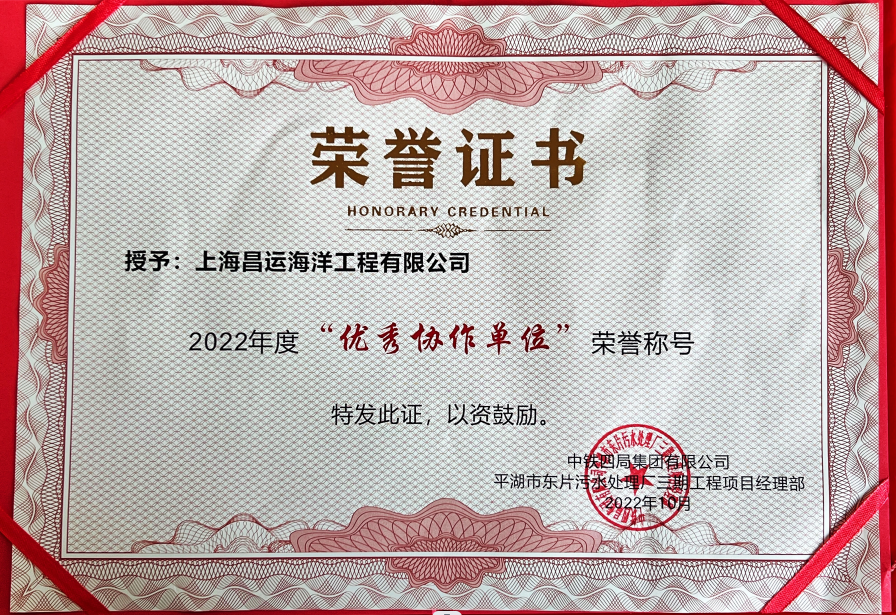 鑒于上(shàng)海(hǎi)昌運在保障¥工(gōng)作(zuò)中的(de)突出貢獻,中鐵(tiě)四局及平湖(h"→ ú)市(shì)污水(shuǐ)處理(lǐ)廠(chǎng↓≤€ )為(wèi)上(shàng)海(hǎi)昌運頒發了(le •)“優秀協作(zuò)單位”榮譽證書(shū)。公司将堅持“專注專業(yè) 使命必達&π≤&↔rdquo;的(de)企業(yè)使命,用(yòng)實際行(xíng)動踐行÷π§(xíng)責任擔當。